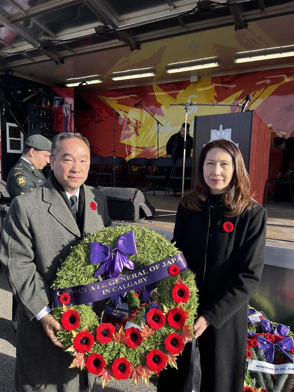 On November 11th, Consul General and Mrs. Wajima attended the Remembrance Day Ceremony at the Military Museums in Calgary. They joined fellow Consuls General from the UK and the USA in laying a wreath to honor those who sacrificed their lives for peace.