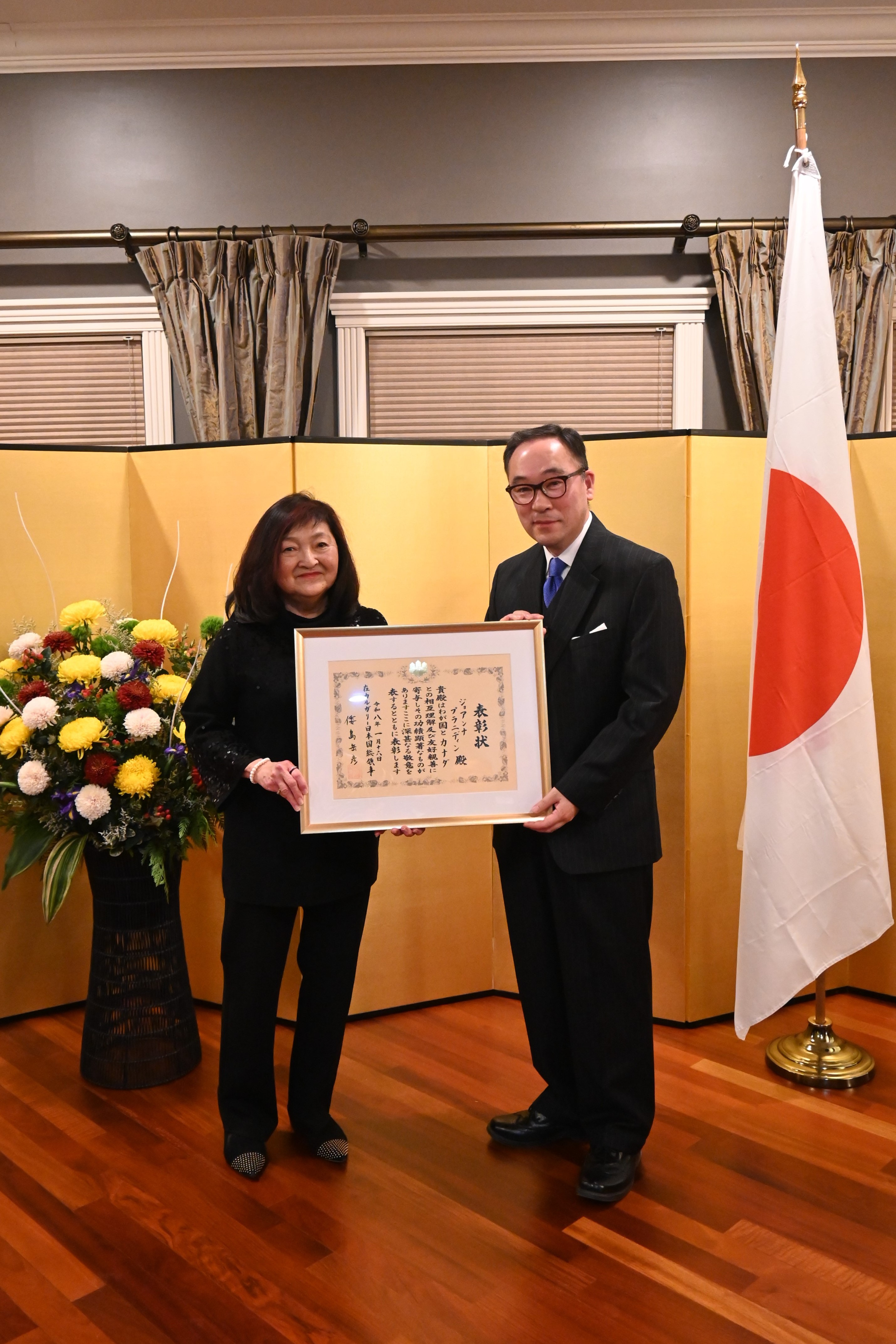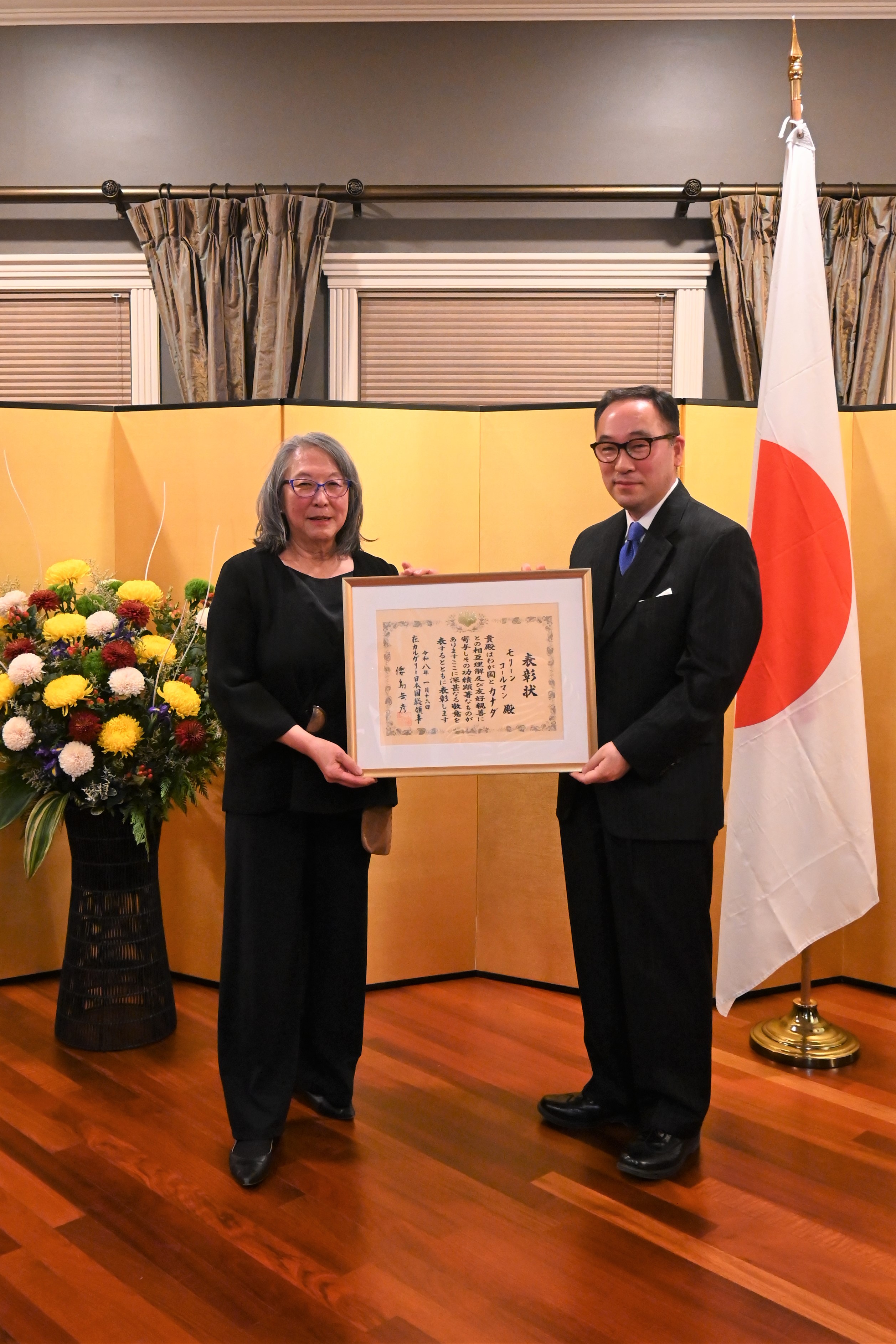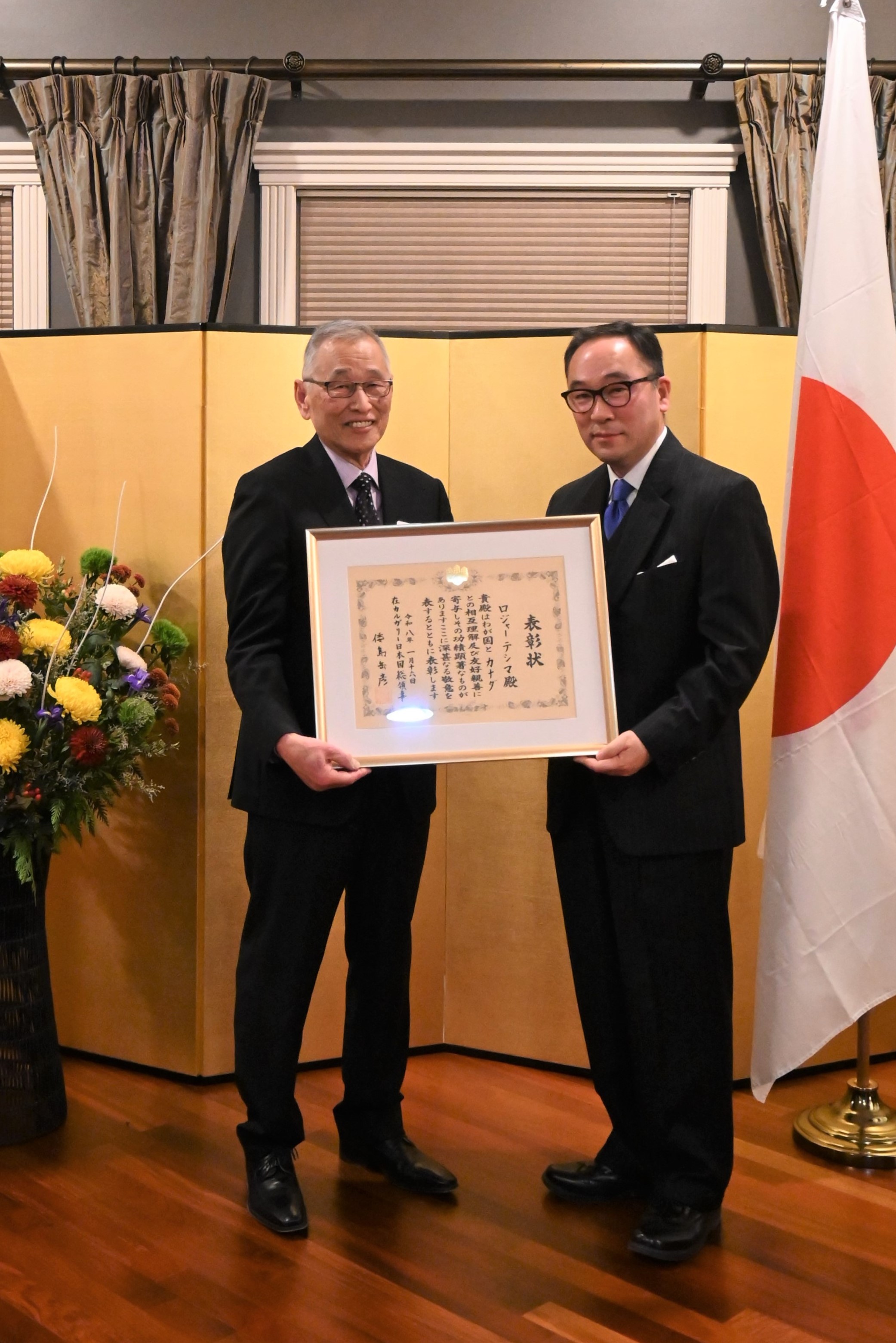Subsequently, the Consul -General presented the Consul-General’s Commendation to four former presidents of the Calgary Japanese Community Association, commending their longstanding contributions to the development of the Japanese community and the promotion of Japanese culture in Calgary.