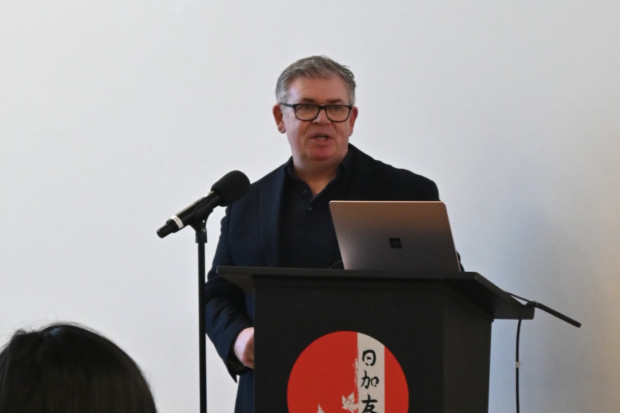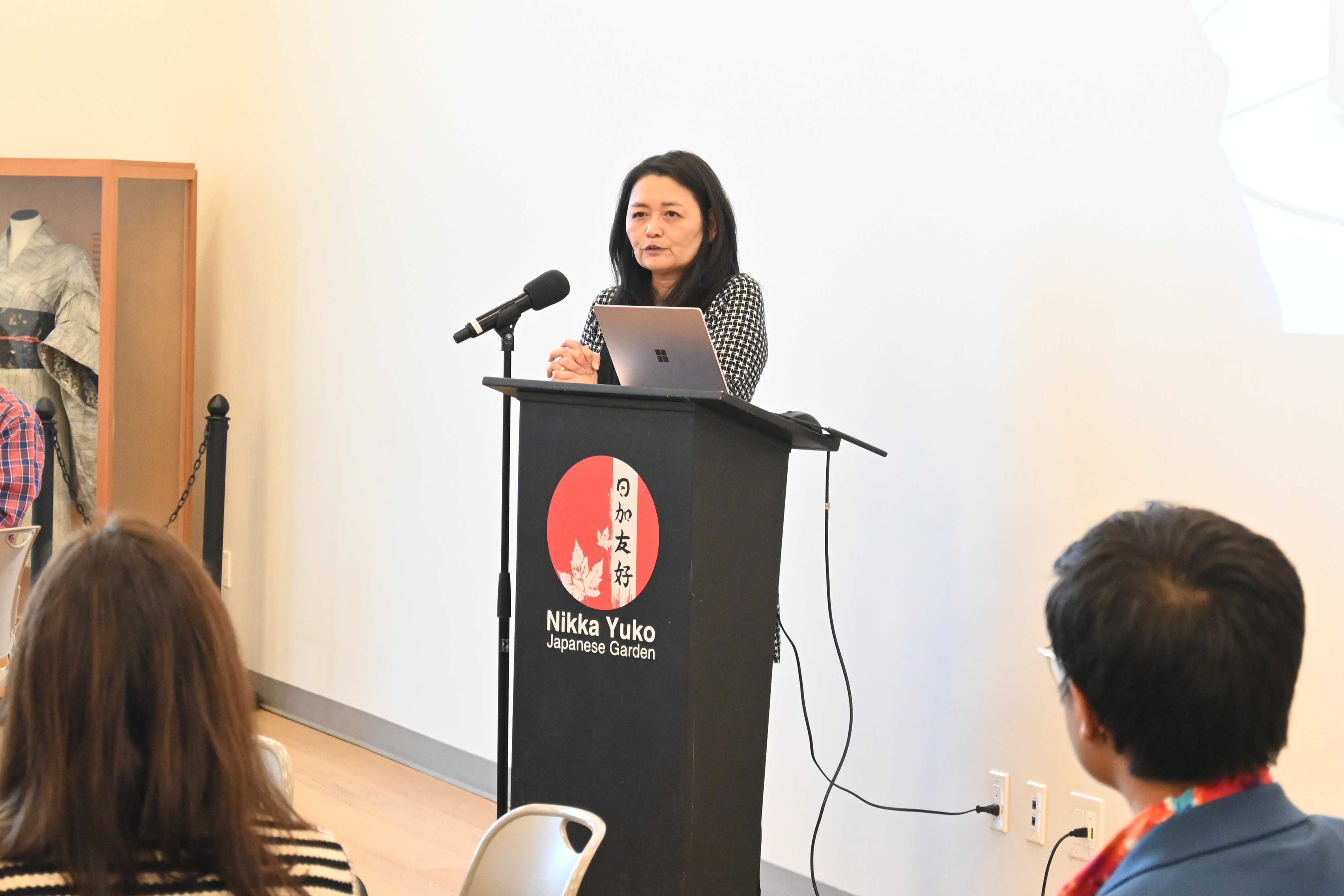 The event commenced with opening remarks from Consul-General Wajima and Ms. Dawn Sugimoto, the president of the Lethbridge & District Japanese Garden Society. This was followed by a presentation by Mr. David Westhead, the head of Tesshin Dojo in Calgary. It provided insights into the martial art’s spiritual philosophy and history. Furthermore, the program featured an introduction to the activities of Kendo Master Naoki Eiga, accompanied by a video screening of his work.