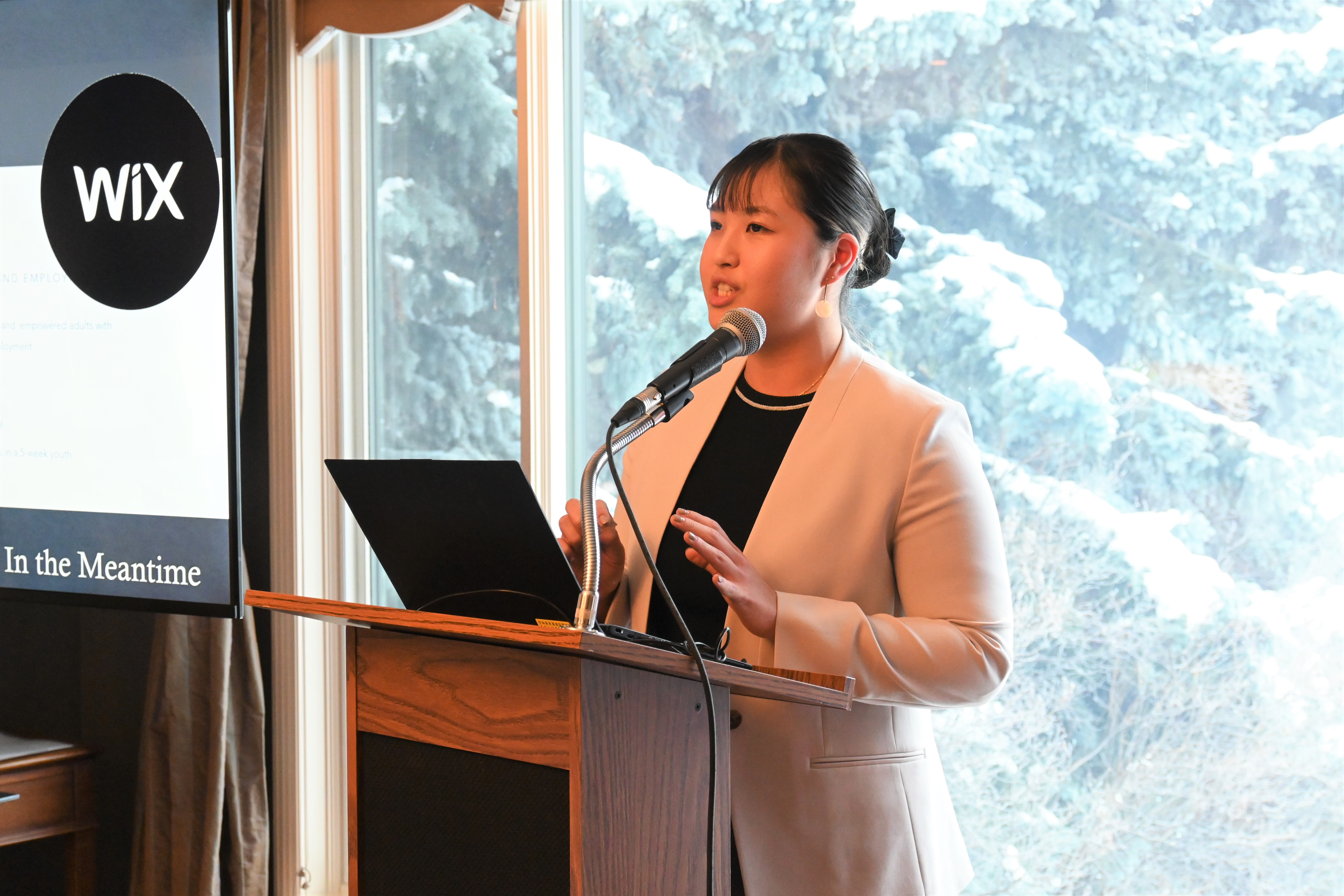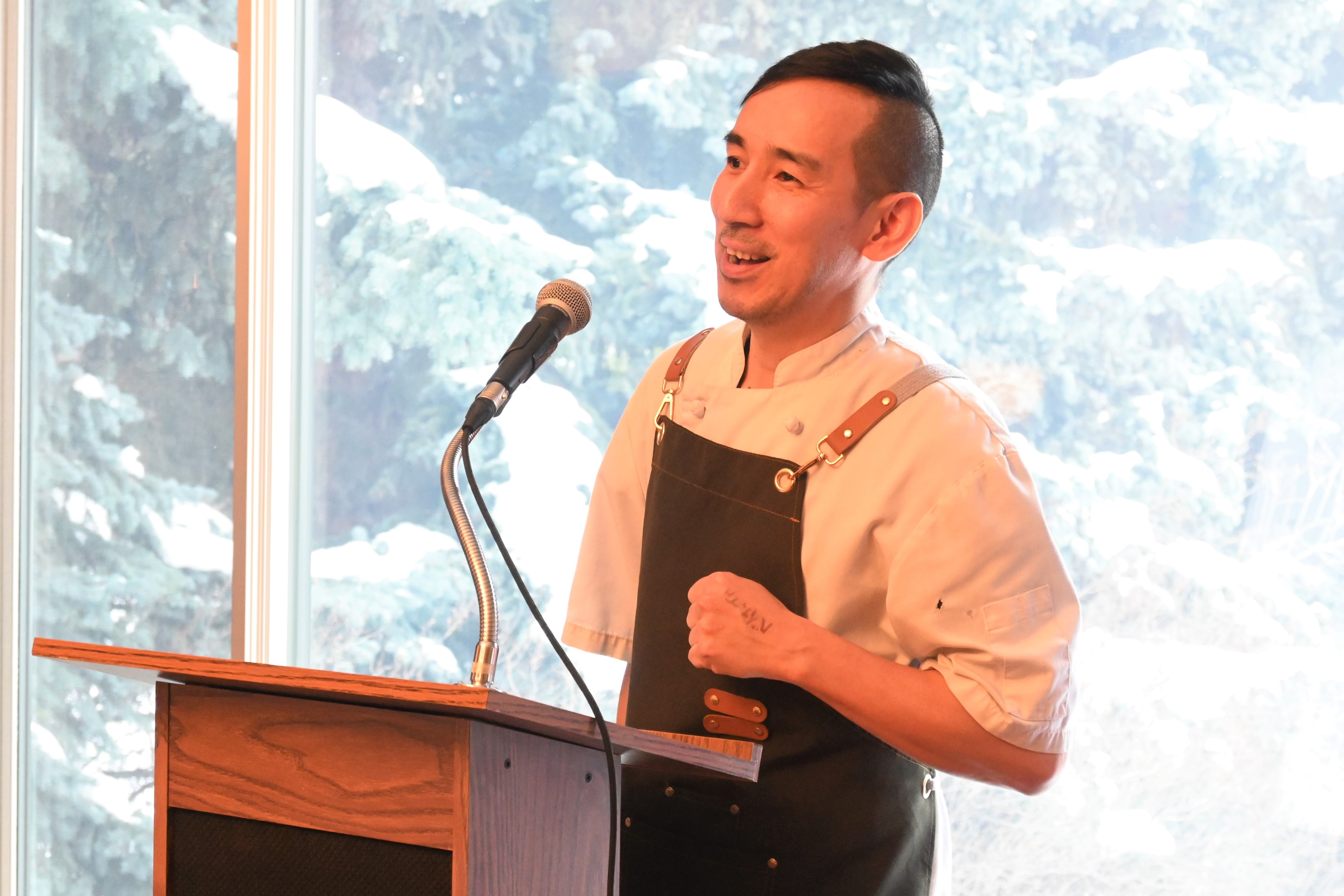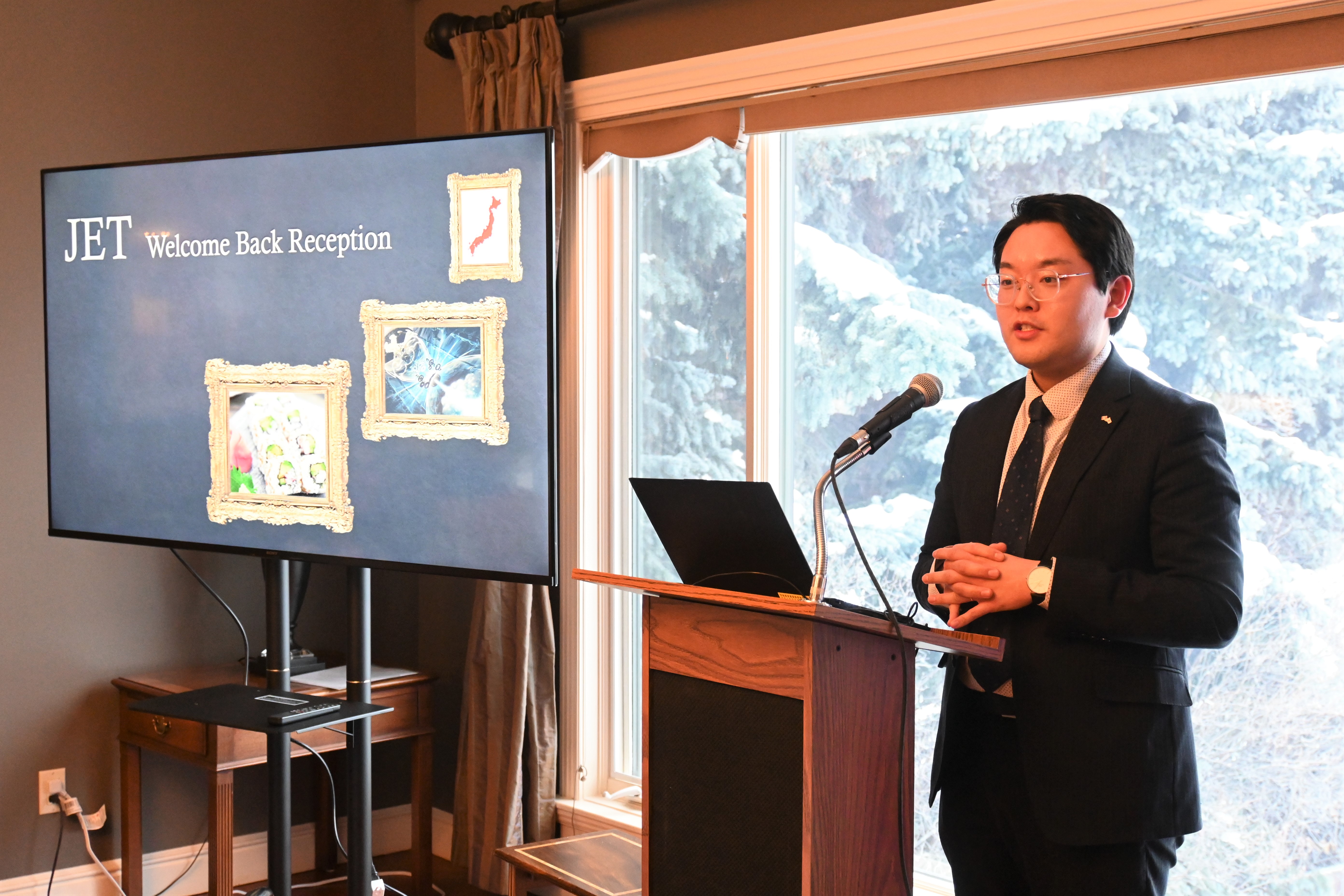 また、元JET参加者である総領事館職員が、JETプログラムで得たスキルや経験を生かした仕事探しやキャリア形成についてプレゼンテーションを行いました。その後、カルガリー大学日本文化クラブの代表とJET同窓会南アルバータ支部代表が、日本との関わりやコミュニティとの繋がりを継続する方法についてスピーチを行いました。