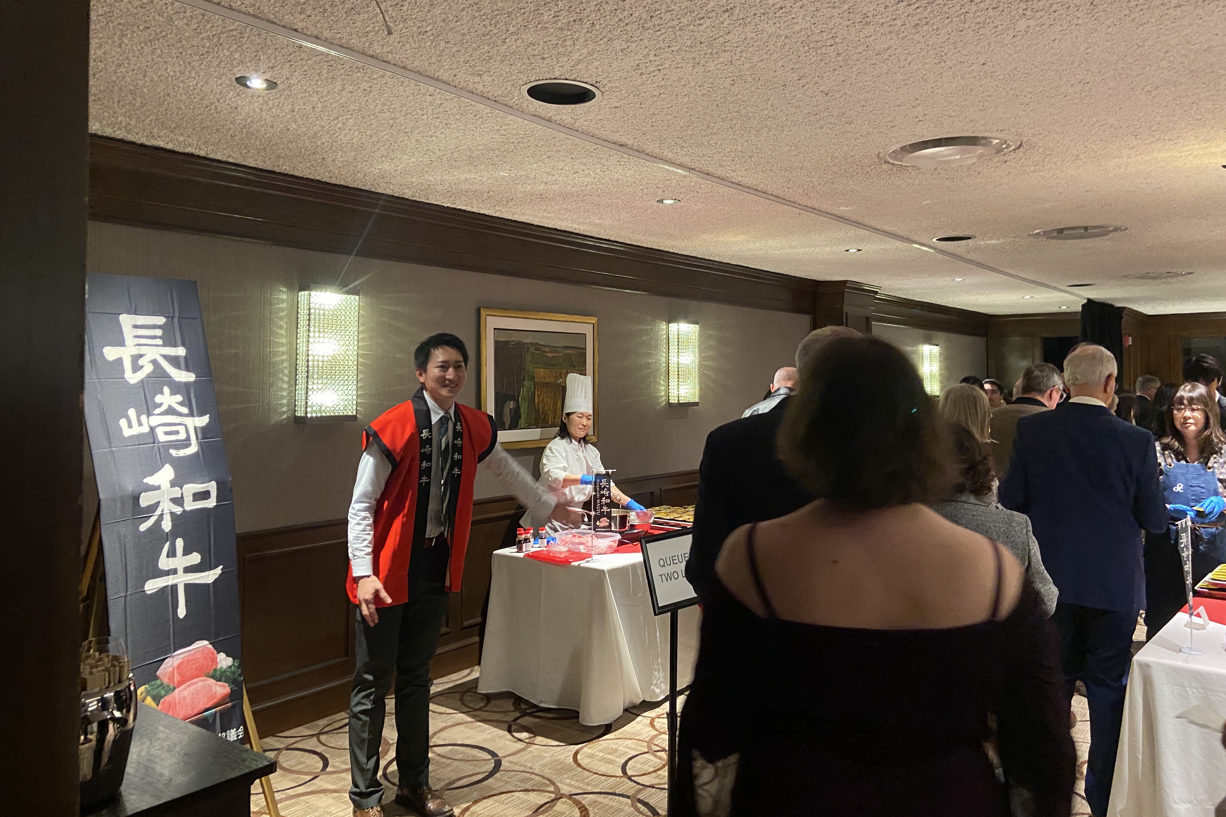 会場内では、尾山料理人が長崎和牛のしゃぶしゃぶの実演供を行ったほか、北海道産ウニを使用した創作料理が振舞われました。また、当地の日本企業や日系コミュニティの紹介、日本酒および日本茶の試飲ブースも設けられました。さらに、北海道庁および長崎県庁の協力を得て地方自治体ブースを設置し、両道県の食・観光・文化の魅力を発信しました。
