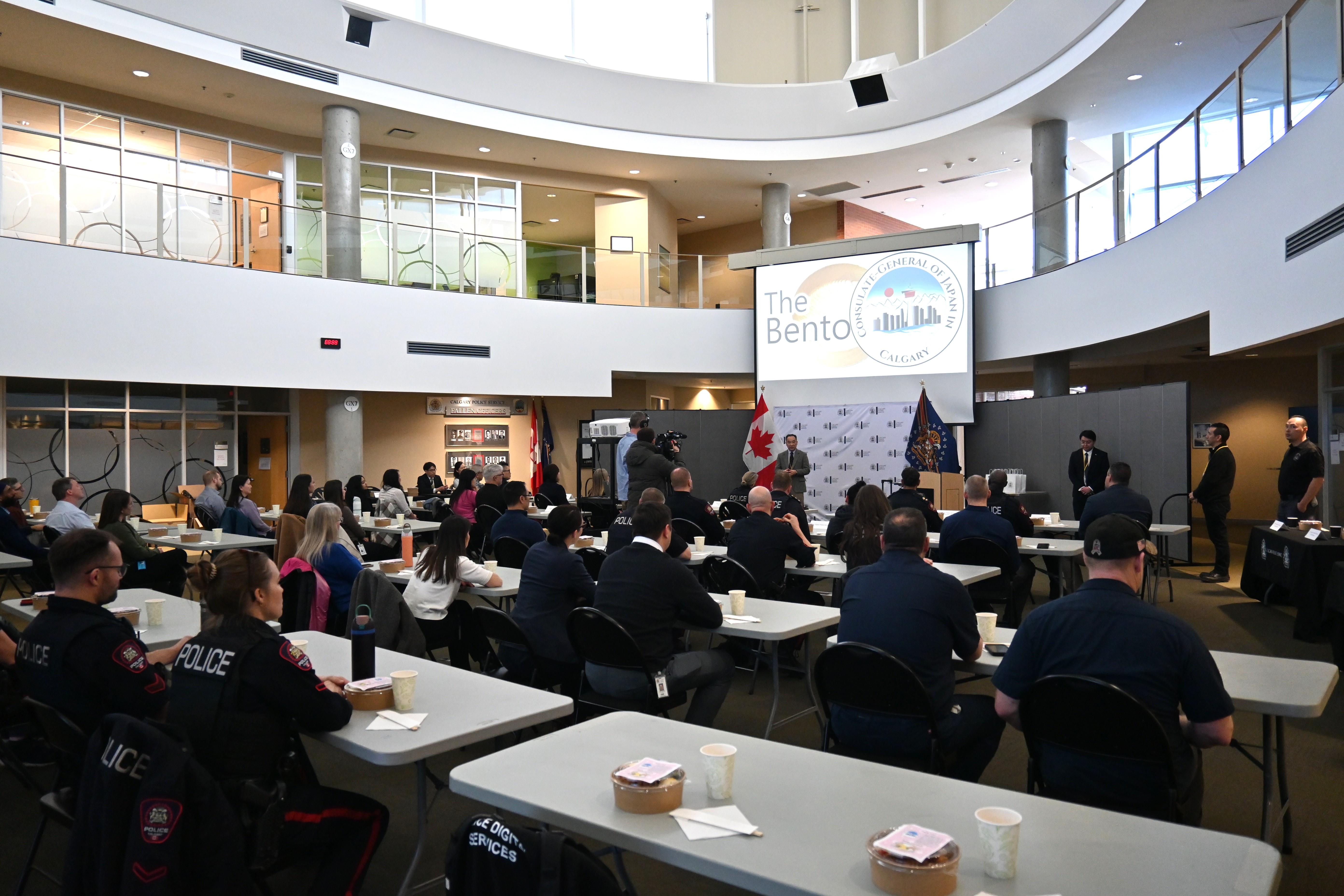 2026年4月8日、在カルガリー日本国総領事館は、カルガリー警察にて日本食の紹介イベントを実施いたしました。これは、約4千人のカルガリー在留邦人を含む市民の安全を守るため日々尽力されているカルガリー警察の皆様に感謝の意を表したものです。